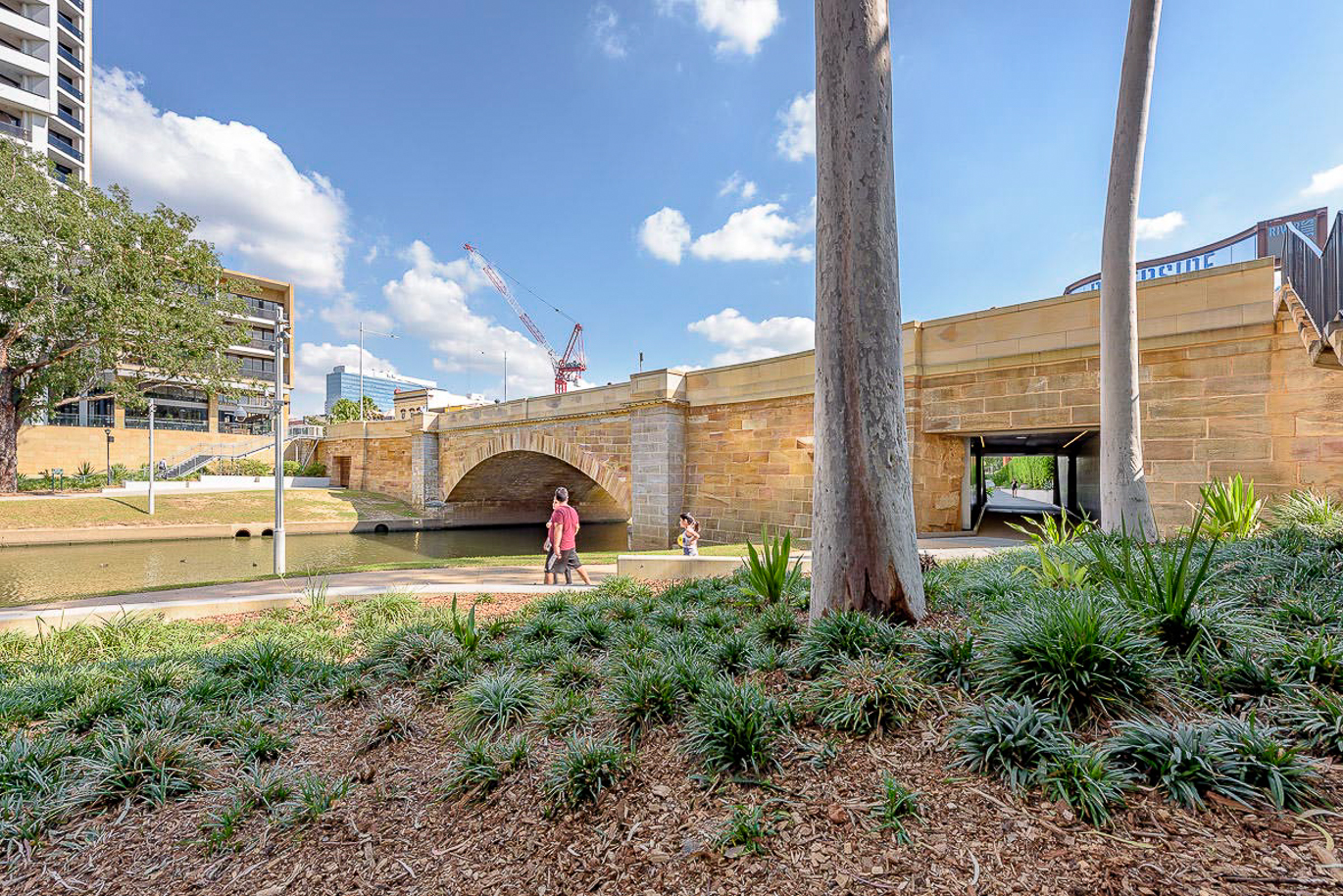 Abergeldie was engaged by City of Parramatta to deliver the construction of the Lennox Bridge portals. The works included the excavation and construction of two portals within the outer abutments of the historic bridge that spans Church Street over the Parramatta River. The works were carried out to provide seamless riverside access for pedestrians and cyclists on both sides of the river, eliminating the need for users to ascend steps or ramps from the riverbank to the street-level bridge deck.