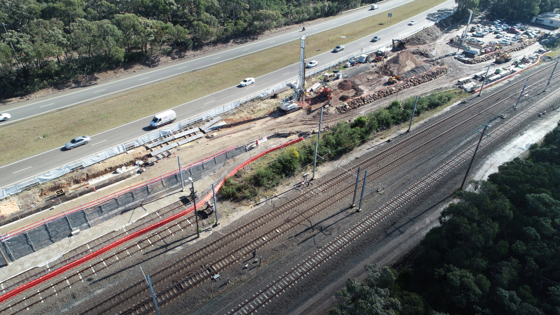 The constrained site, bordered by Princes Highway and the active Eastern Suburbs and Illawarra train line, required continuous coordination between Sydney Trains and RMS for safe work in the live rail corridor. Abergeldie’s involvement in pre-construction planning and reinforced embankment design, alongside challenges such as unidentified latent ground conditions and service locations, demanded meticulous logistics and sequencing for safe operations on the narrow, steep embankment site.